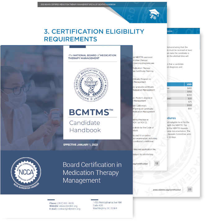 The licensed pharmacist successfully completes an NBMTM-approved training program in medication therapy management. Approved training programs are: